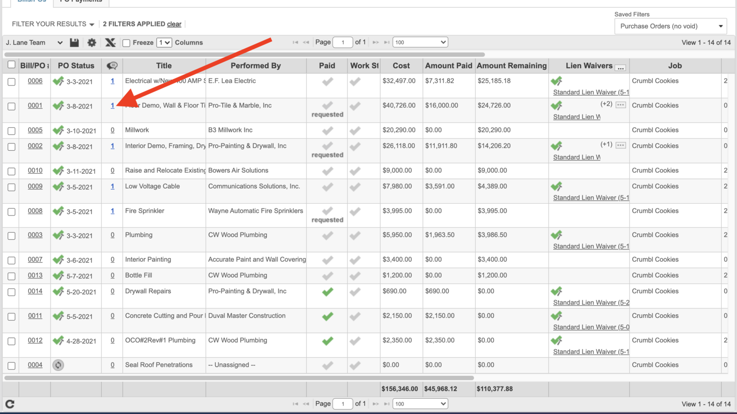 Find the amount they’ve requested by clicking into their PO >click the “Payments/Lien Waivers” tab>click the request title >view the amount requested on the top left of the window.